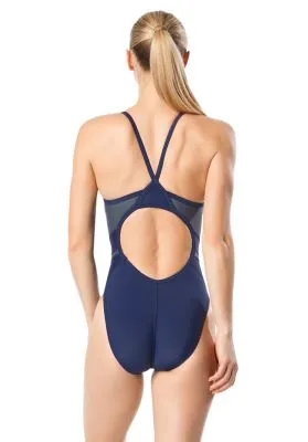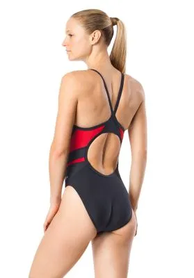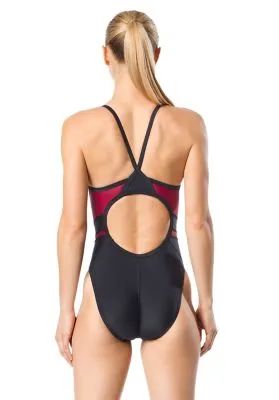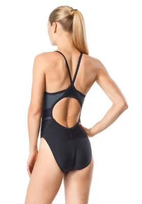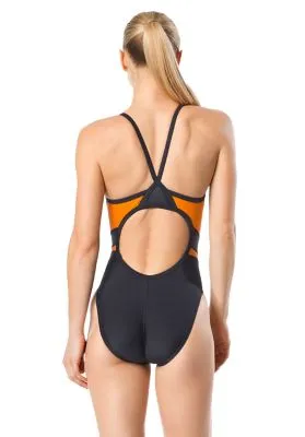 Set the tone. This colorblock swimsuit is cut from PowerFLEX Eco fabric, created from recycled yarn scraps for an environmentally friendly style that also performs on race day.