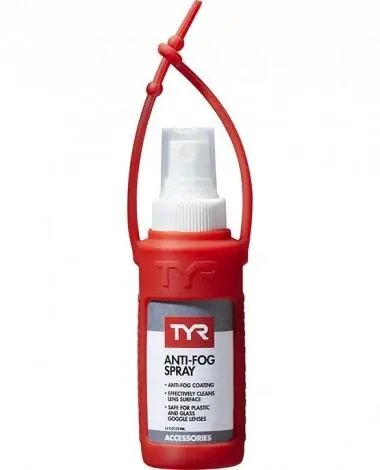 Specifically formulated to keep goggles clean and fog free, the TYR 0.5 oz. Anti-Fog Spray is a true swim essential. Simply spray the LAFSC solution on any goggle, mask or lens and wipe the surface clean. A Silicone case is also included for easy use.